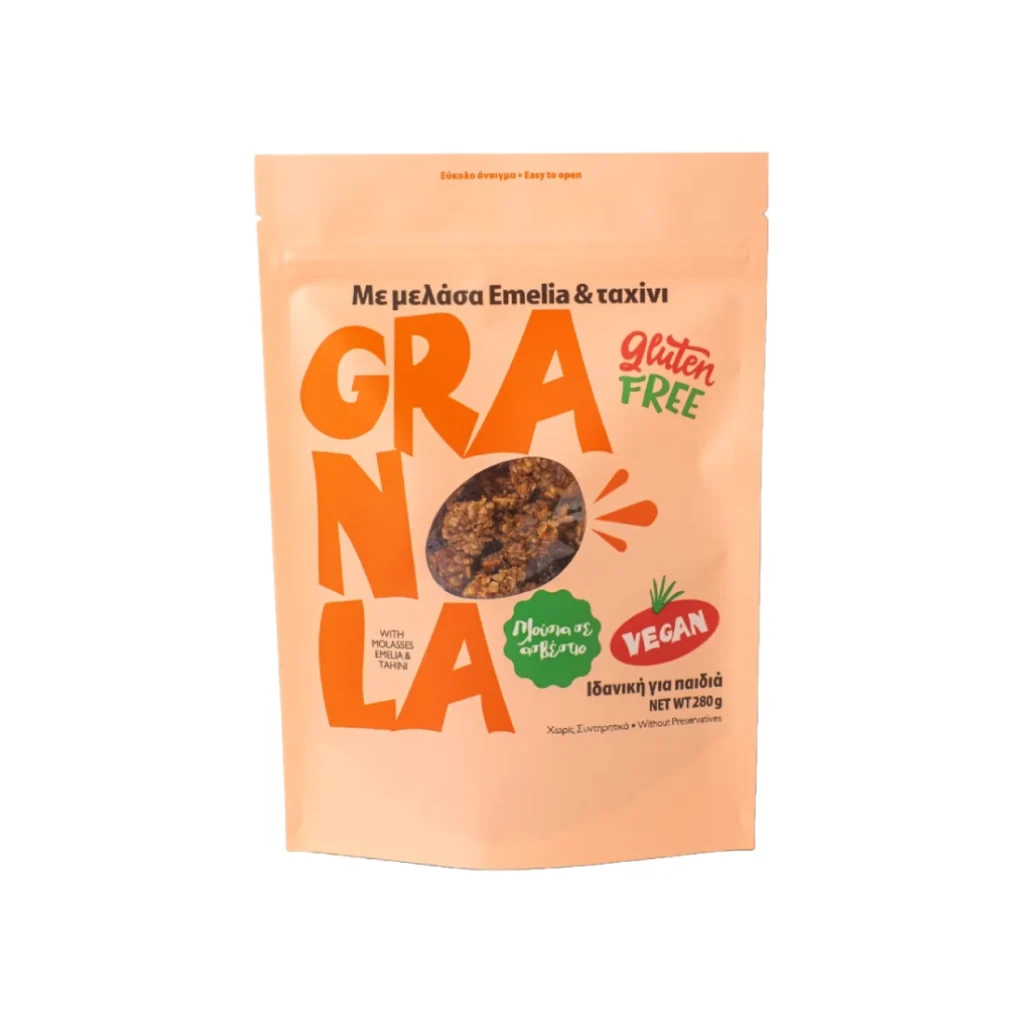 Η vegan Γκρανόλα με Ταχίνι και Μελάσα Emelia, είναι ο πιο υγιεινός τρόπος να ξεκινήσετε τη μέρα σας. Πλούσια σε σίδηρο και ασβέστιο, με μαλακή υφή, μοναδική γεύση και κυρίως, αγνά, ποιοτικά συστατικά. Δεν περιέχει ζάχαρη και γλουτένη, ούτε συντηρητικά και φοινικέλαιο και είναι φιλική προς διαβητικούς, ενώ αποτελεί την τέλεια επιλογή για τα παιδιά, αλλά και για όλη την οικογένεια.