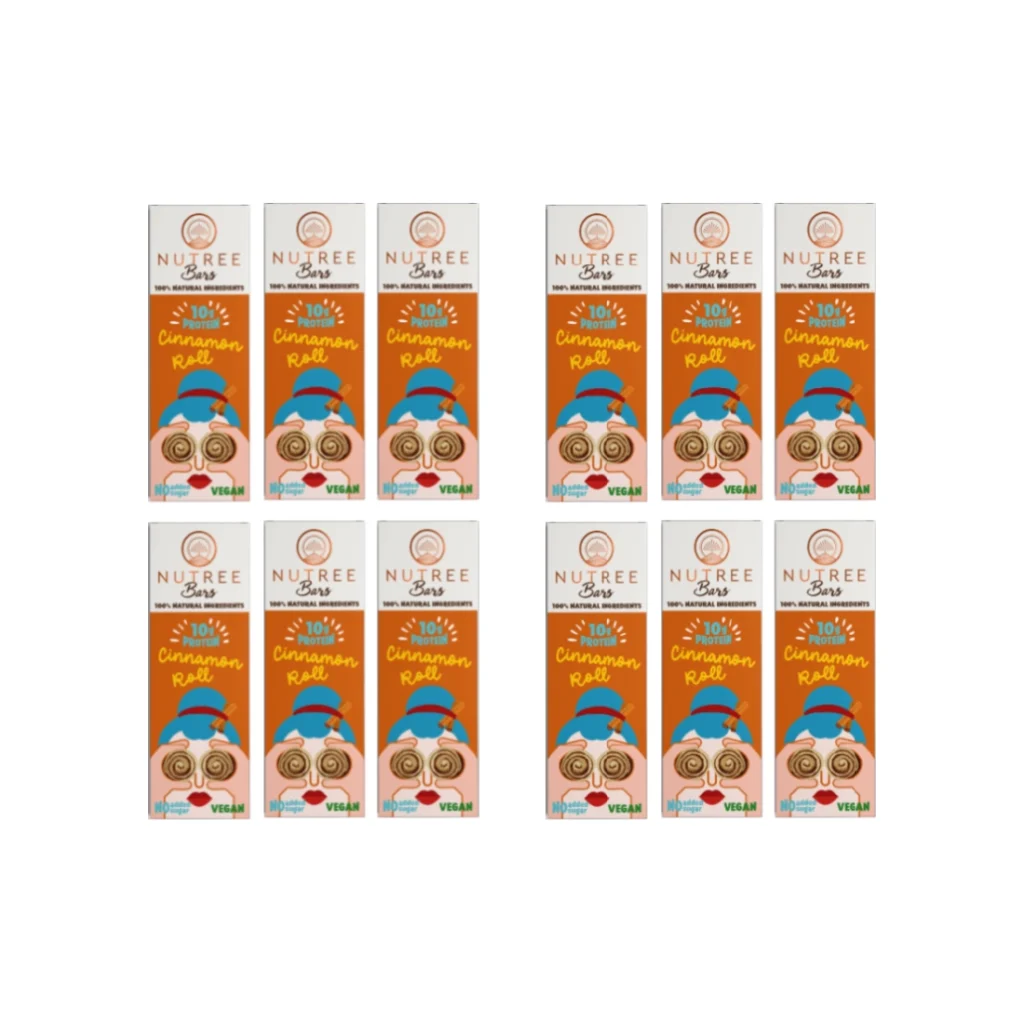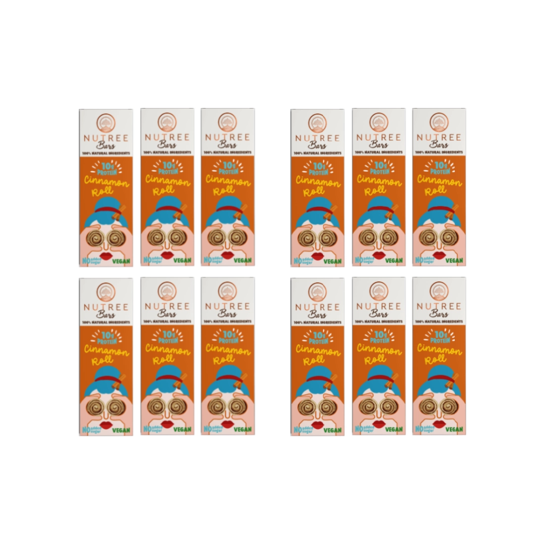 The super tasty Nutree Cinnamon Roll Bar with 20% protein, now available in a bundle of 12 pieces.