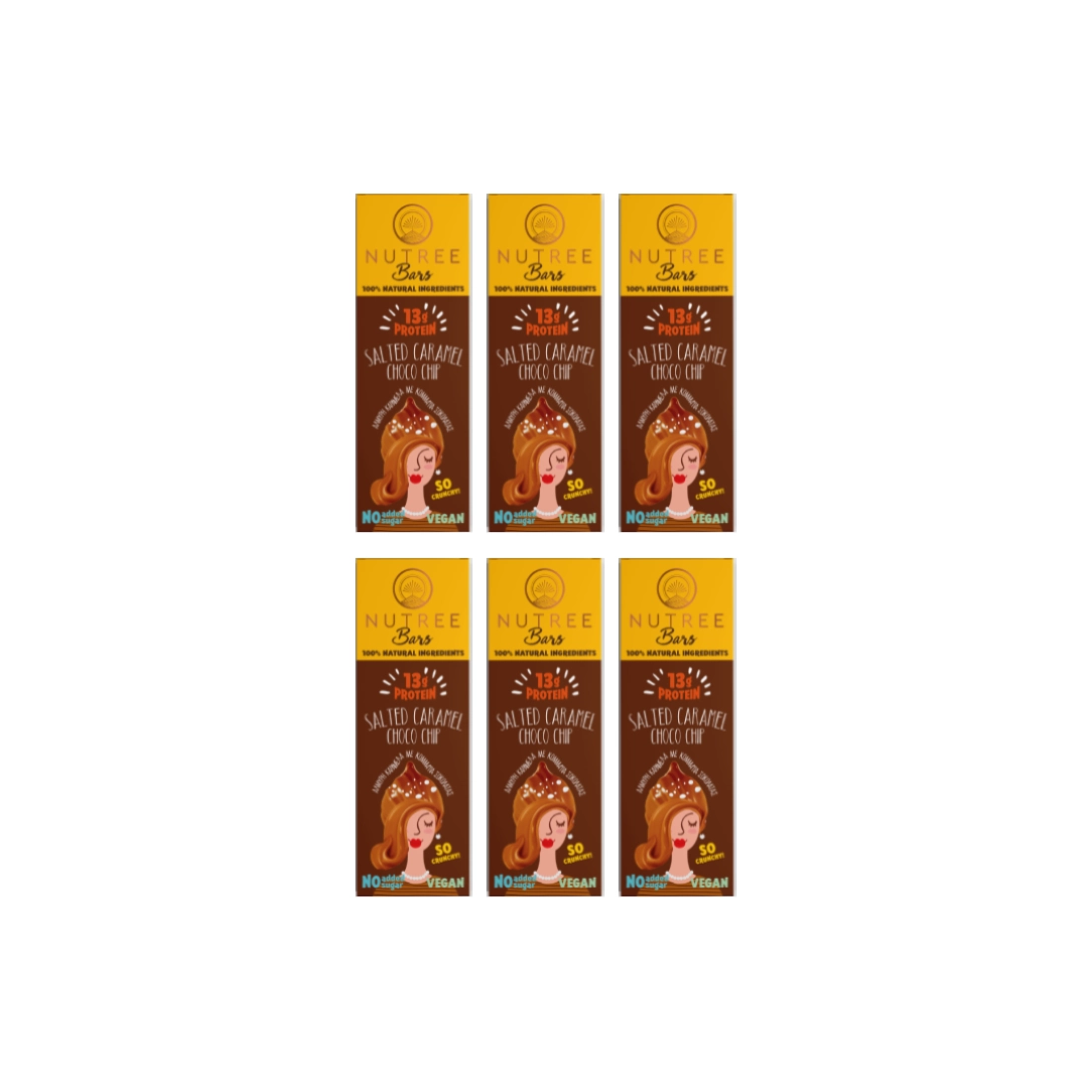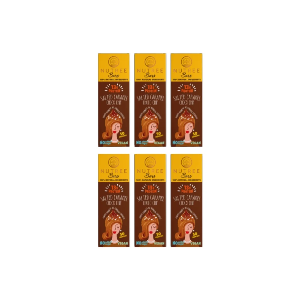 The delicious Nutree Salted Caramel Bar with 26% protein, now available in a bundle of 6 pieces.